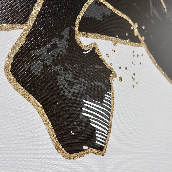 - Hand-stretched giclƩe print on canvas with gold glitter embellishments.