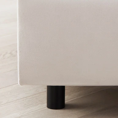 Crafted with a sturdy kiln-dried hardwood frame, this clean-lined bed boasts notched corners and neatly tailored upholstery. Mattress and box spring required. Made in the USA. Shown in Velvet Pearl.