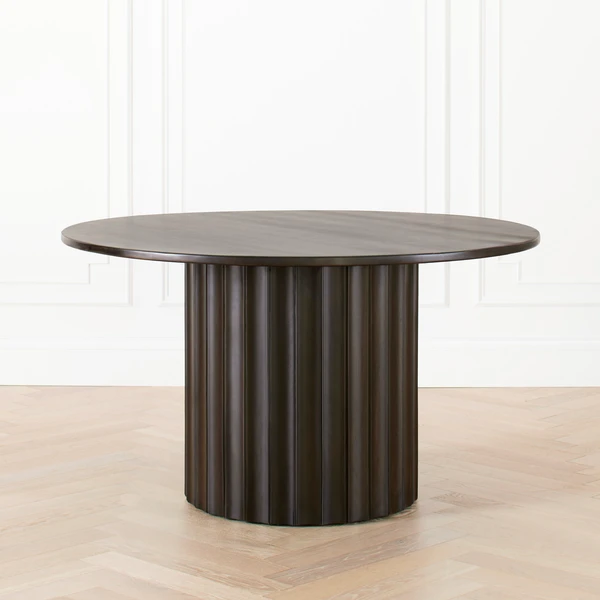 Modern and refined with a hand-rubbed ebony finish, our Dahlia table’s round top is anchored by a fluted pedestal base with ribbed molding.