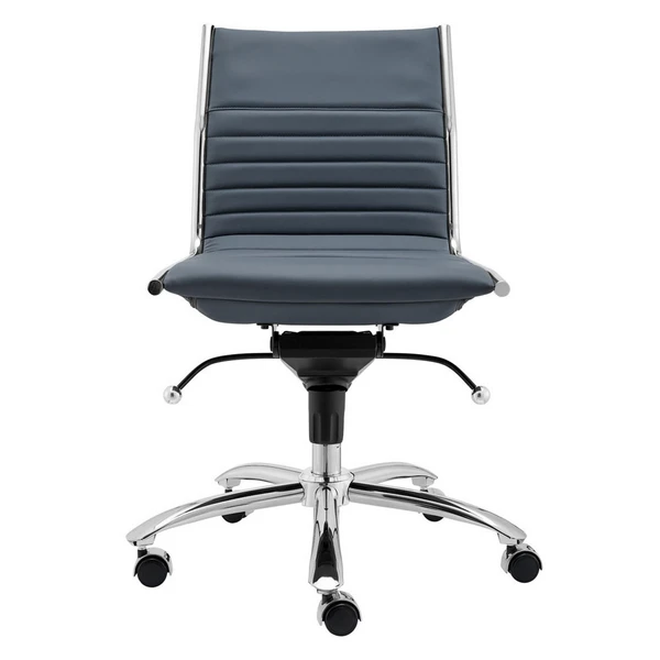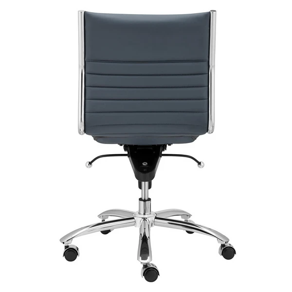 Designed with a chromed steel frame and channeled faux-leather upholstery, this desk chair brings both style and function to the home office. Constructed in one piece, its seat and back interior is wrapped in flat bungie banding for all-day comfort, while casters make the chair easy to move without damaging your floors.