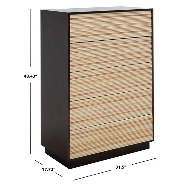 Tantalizing tropical flair breezes into your dƩcor with this coastal-chic Emani Chest. The black wood frame is a perfect juxtaposition to its five geometric, natural-finished cane drawers, providing striking textural depth and lasting style in any interior.
