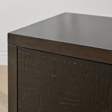 A crocodile pattern on this cabinet’s three doors gives this otherwise clean-lined design dimension and texture. Inside, three drawers and three adjustable shelves offer a wealth of storage space.
