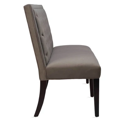 The modern banquette — tufted, tailored, and ready for dinner parties. High-density foam, resilient springs and espresso stained solid-birch legs elevate this seating option for everyday use. Shown in Bella Velvet Otter.