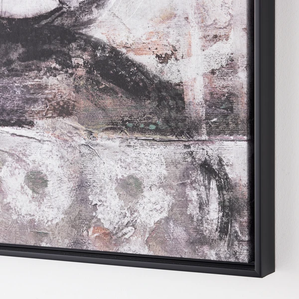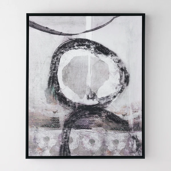 Neutral in palette, but anything but boring, Crescent V will add loads of interest to your space. Designed by Nikki Chu, this image is printed on fiber canvas, framed in black, and set to hang vertically or horizontally.