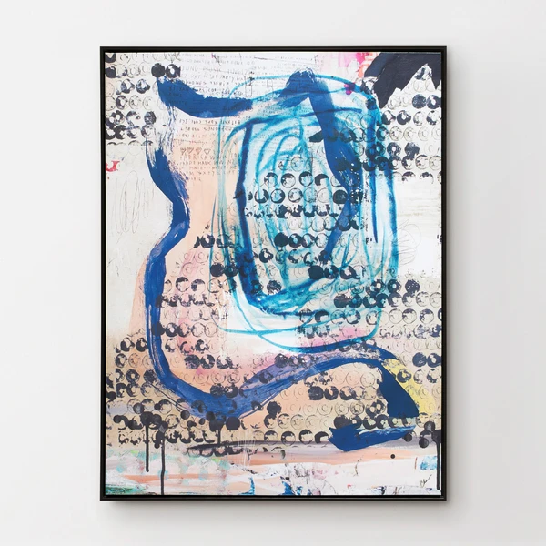 Printed on canvas with a hand-applied image brush gel finish and set in a black frame, this striking work from Nikki Chu lends a modern mood and vibrant color to the wall.
