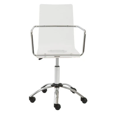 A stylish addition to the home office, this desk chair features a contoured seat made from clear acrylic. Casters make the chair easy to move without damaging your floors, while the chromed steel frame lends a glam finishing touch.
