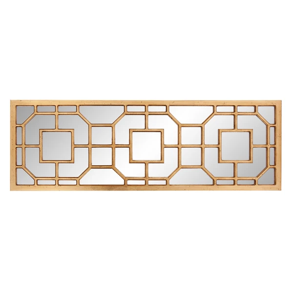 Featuring an intricately detailed lattice overlay design, this wall mirror exudes classic English style. A gold finish tops off the look.