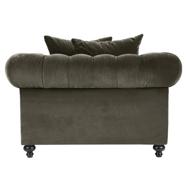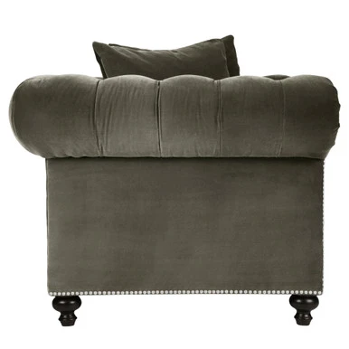 Combining notched arms, deep button tufting, and gleaming nailhead trim, the handcrafted pieces in our Hampstead Collection deliver timeless elegance and a dash of glamour to any room, while kiln-dried hardwood frames and ample padding ensure long-lasting comfort and support. Shown in Bella Velvet Otter brushed silver nailheads.